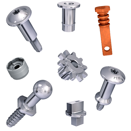 The variety of possible applications for cold-formed parts made of steel, copper or aluminium is virtually unlimited. EJOFORM® products made by EJOT are always innovative and customer specific fastening and design engineering solutions. They meet a wide range of requirements, for example as a holder, stop bolt, spacer sleeve, adjusting element or safety-relevant component in brake systems. The individual products are manufactured in a multiple step cold-forming process. With this technology, a wire section is formed into a complex cold forming part over several forming steps.
