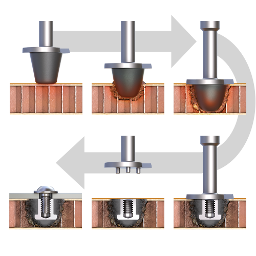 The EJOT TSSD® ("Thermischer Stoffschlussdom" = thermal adhesive bonding boss) product and corresponding joining process have been developed with the objective to join components of which one (preferably the top layer) is made of fibre-reinforced plastics. The process is suitable for sandwich elements with honeycomb and foam core structures (with different top layers) as well as for CFRP and GFRP materials. During the joining process, the plastic boss (made of thermoplastic) is installed into the plastic component with a certain rotation speed and axial load. The EJOT TSSD® Aero was developed on the basis of the TSSD® standard, but with the target of achieving aerospace conformance in terms of strength and material properties.