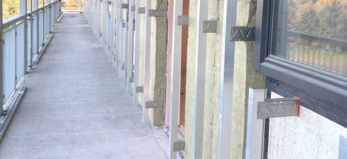 Cepheler için EWS1 (Dış Duvar Sistemi 1) yangın güvenlik derecelendirmesinin, termal ve havalandırma hedefleriyle dengelenmesi gerekiyordu. Ağırlıklı bir U Değeri (tipik bir alt çerçeve düzenlemesine dayalı) 0.13 W/m²k seviyesinde tasarlanan yüksek termal gereksinimler göz önüne alındığında, alt yapı boşluğu 250mm kalınlığında yalıtımı barındırmak ve bu tip bir sistem için gerekli havalandırmayı sürdürmek amacıyla yeterince derin olmalıydı.
